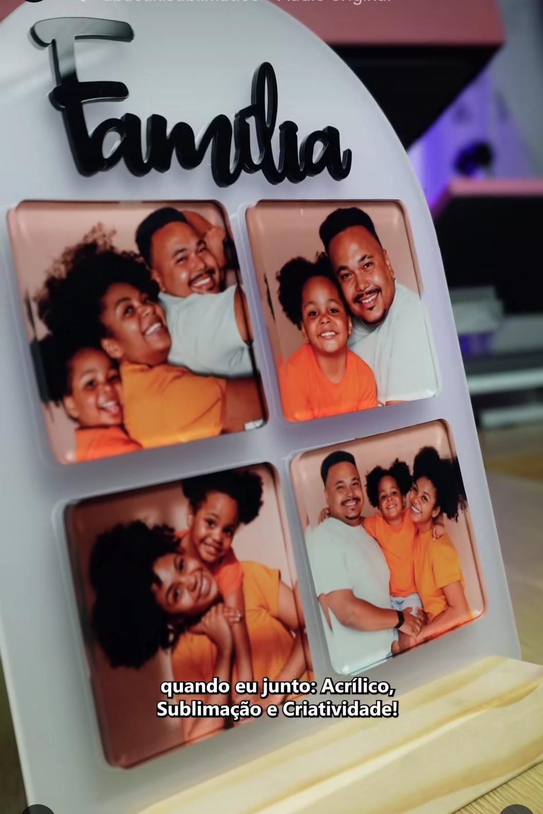 frase: família ou Amor em acrílico preto