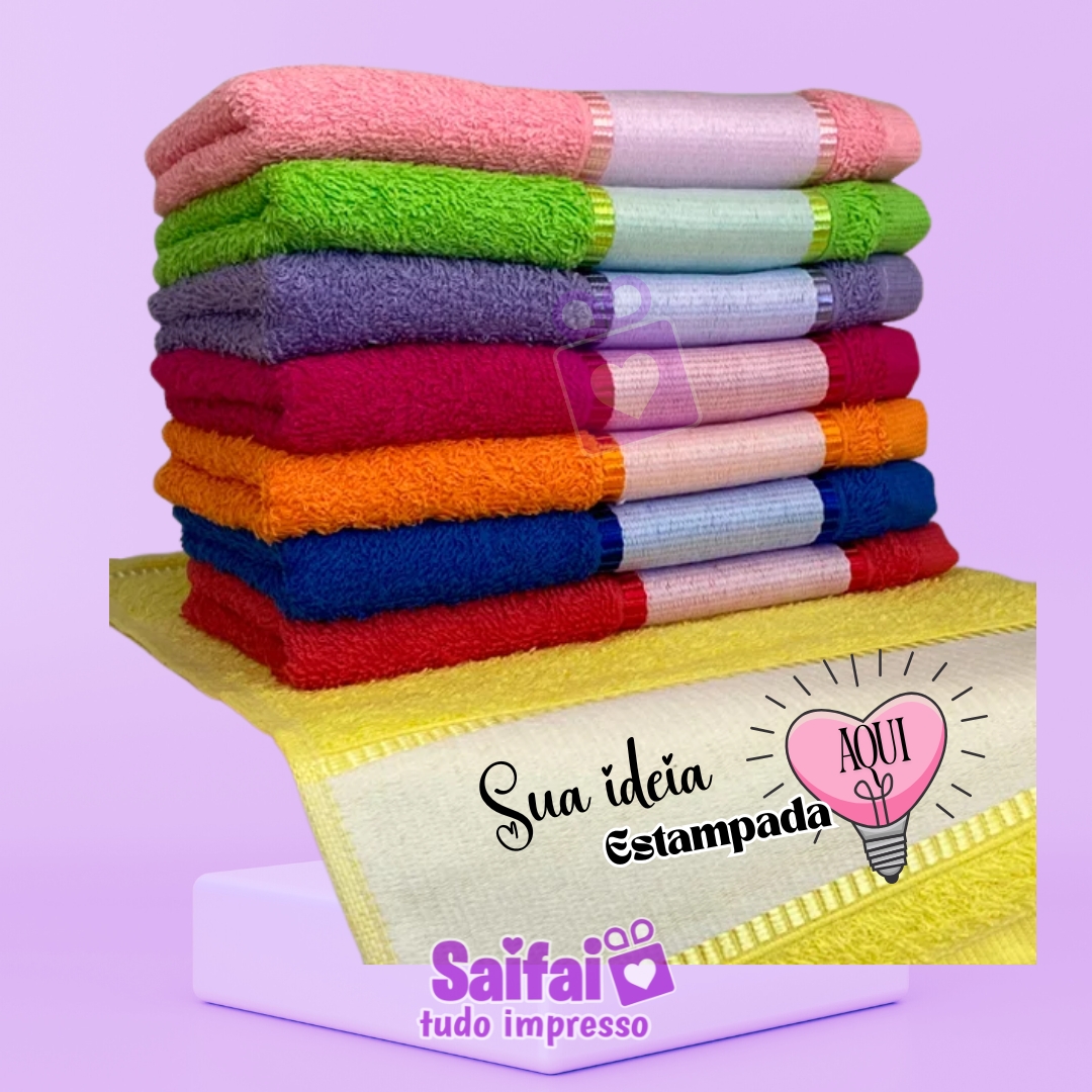 Confeccionada em tecido macio, com excelente absorção, recebe estampa personalizada em alta definição com nome, frase, logotipo, imagem ou tema de sua escolha.